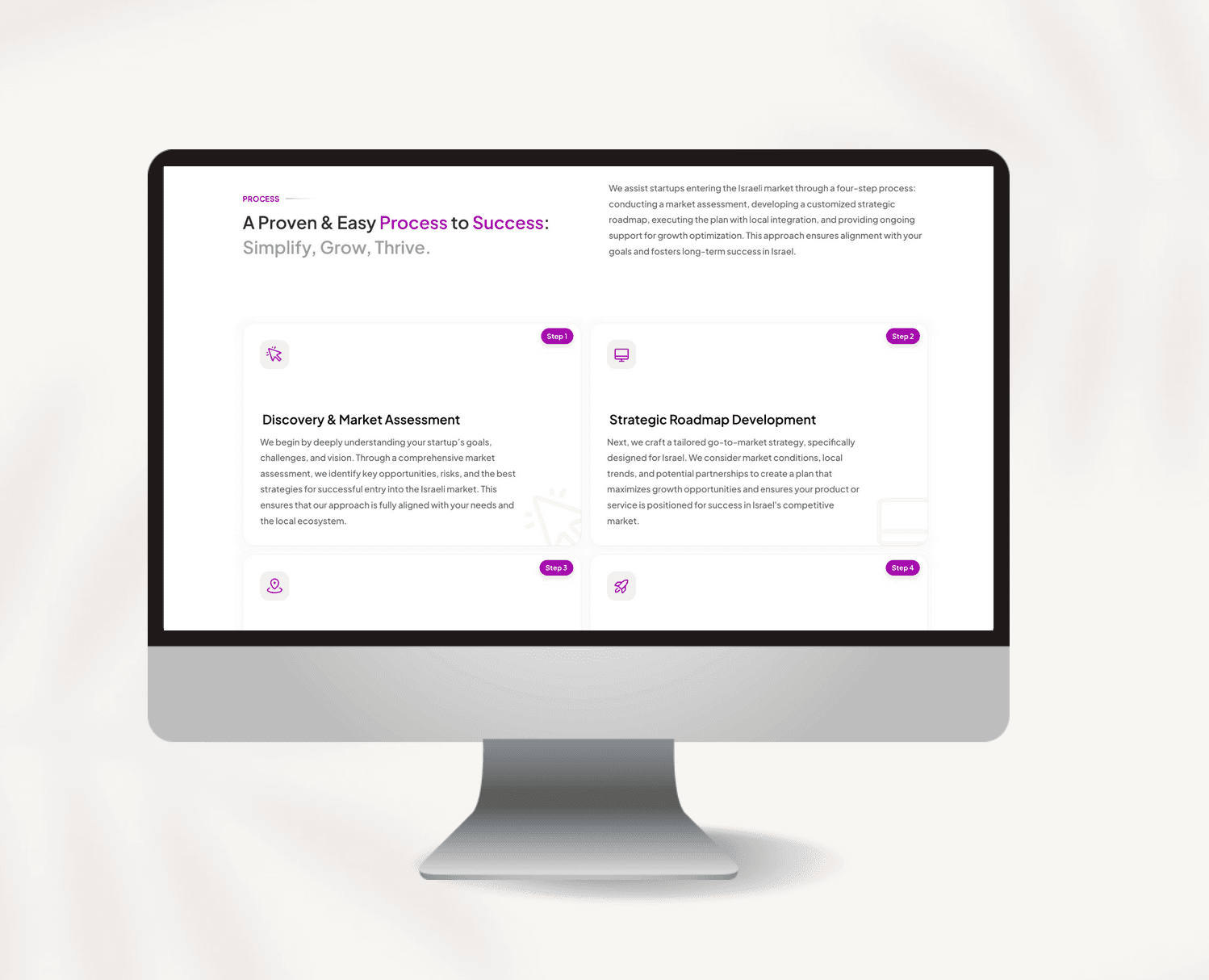 Our design approach was professional, minimal, and purpose-driven. We used a bold yet clean visual system to position IsraelGate as a serious, trustworthy, and globally competent business partner—using design to reinforce their credibility.